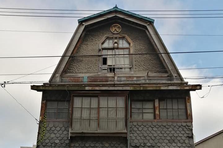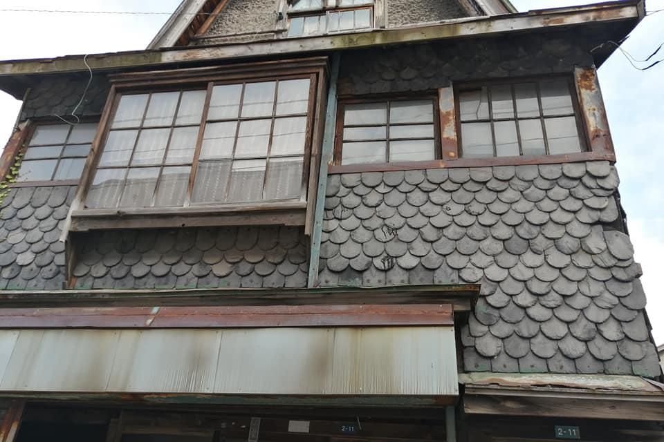 よく見ると魚鱗のようにカットされたスレート石板が前面に貼られていて、普通の民家には見えないので、何か海産に関係するお商売をされていたのか?なんて想像もしていました。