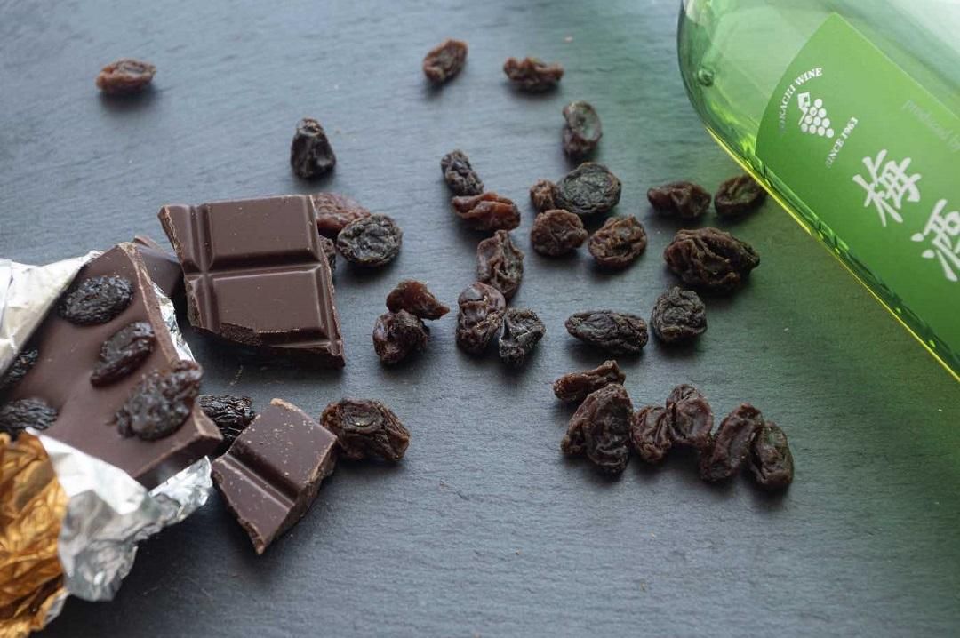 北海道産梅酒にじっくり漬け込んだカリフォルニア産の有機レーズンをトッピングしています。