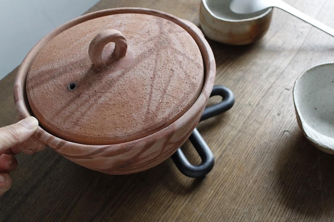 鍋敷きの足には、ゴム製のキャップが付いているので、安定感があり、熱い土鍋ややかんもしっかり受け止めてくれます。