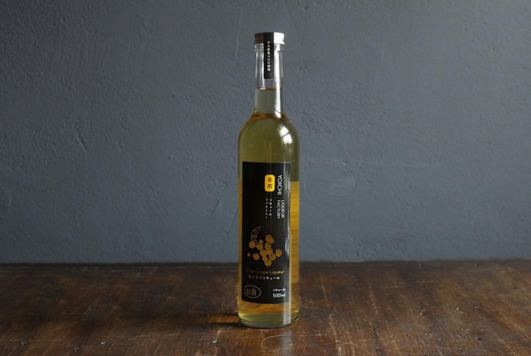 余市町の果物を使ったリキュールを製造している「余市リキュールファクトリー」の『白ぶどうリキュール』。北海道余市町のぶどう・ナイアガラを使用したリキュール、芳醇な甘さと香りが漂います。