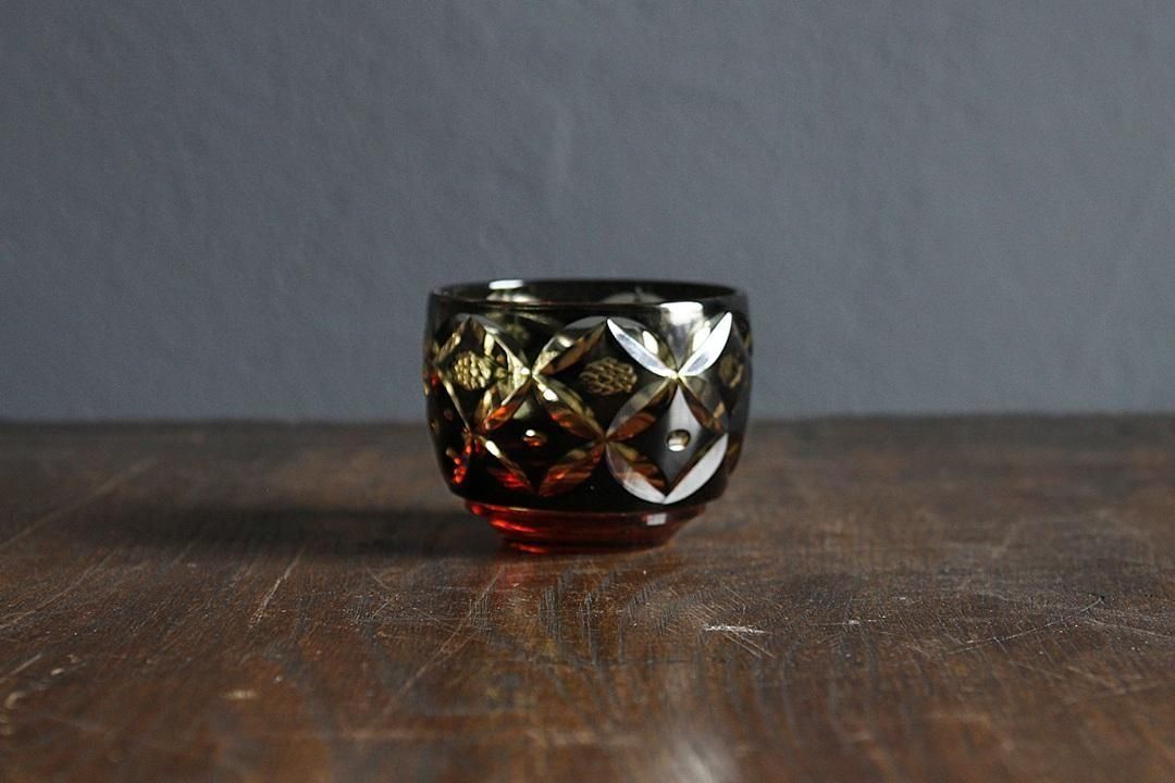 深川硝子工芸 花七宝 ぐい呑 黒琥珀
