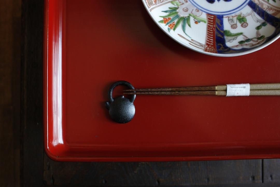 およそ900年の歴史を誇る山形鋳物。山形県を拠点に、日本に伝わる鋳物の伝統美を今日の生活様式に提案する「鋳心ノ工房」の箸置き『鉄瓶』です。