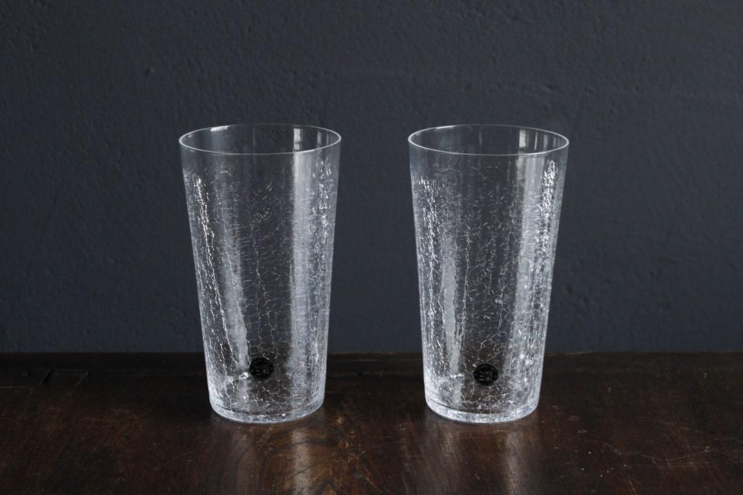 小樽の深川硝子工芸の『CRACKS タンブラーペア』。クリスタルガラスにひびの模様(クラック)を施した美しい小樽硝子のグラスです。深川硝子工芸は、明治39年、東京都深川市にて創業の深川硝子工芸は、2003年に小樽に移転し、独自の技法も取り入れた美しいガラス製品を作り出しています。