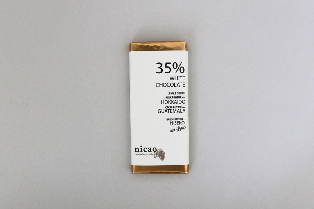 北海道・ニセコ発の「Bean-toーBar」工房、「nicao」で作られた『35% ホワイトチョコレート』です。
