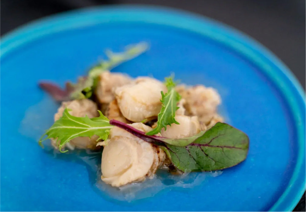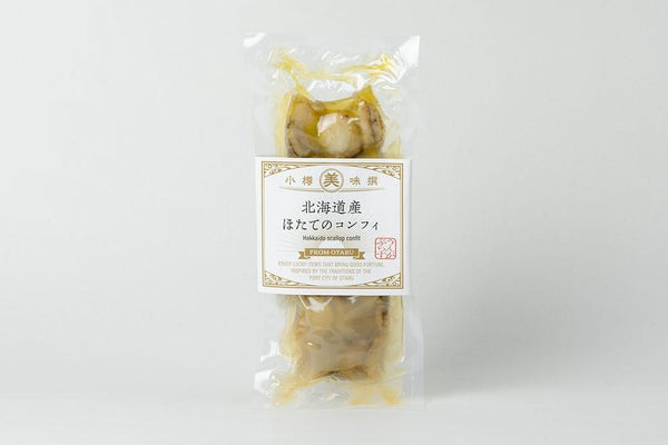 Confit is a cooking method originating from southwestern France, in which ingredients are slowly simmered in oil at low temperature. This dish is prepared simply and deliciously without any additives, using only olive oil, rapeseed oil, and salt. We offer two types of ingredients: herring and scallops from Hokkaido.