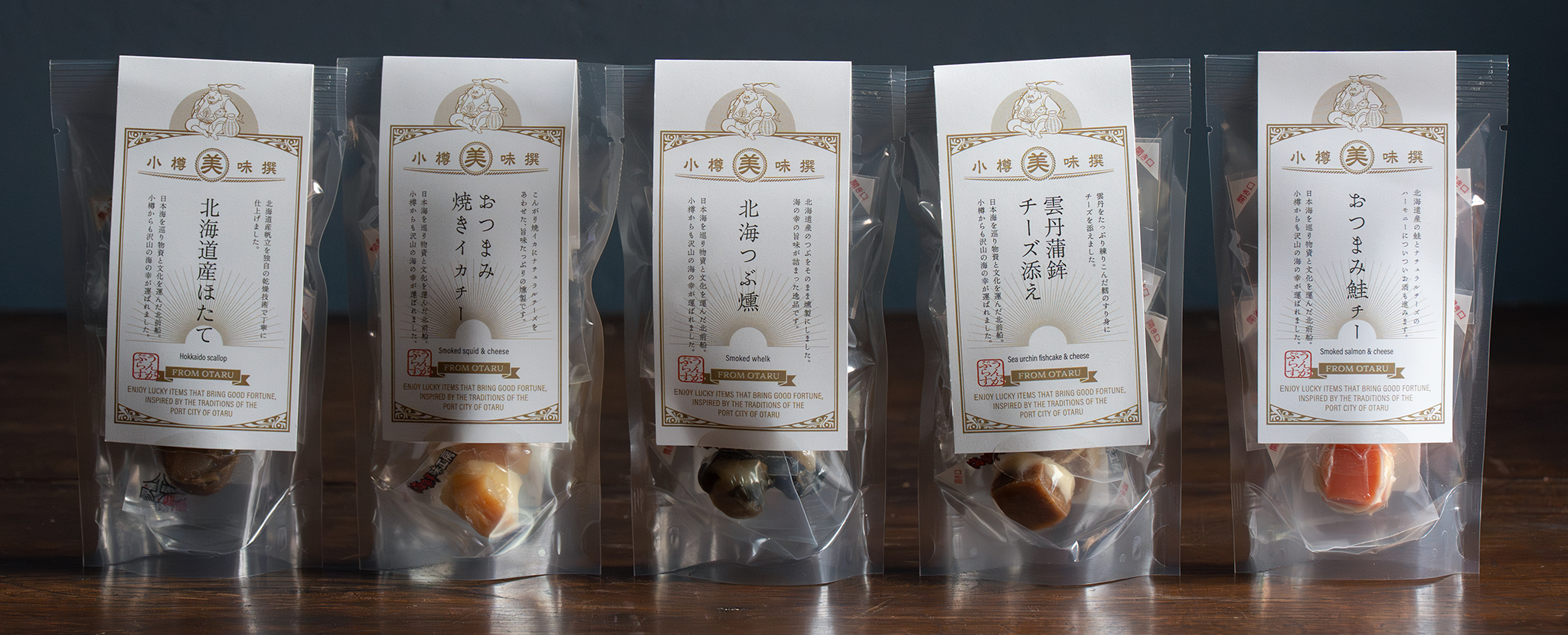 The Kitamae ships sailed across the Sea of Japan, transporting goods and culture. Otaru also brought a wealth of seafood with it. The "Otaru Delicious Snacks" series is a concentrated version of the delicious flavors of Hokkaido's bountiful seafood, inspired by the memories and history of the city that prospered through trade on the Kitamae ships.