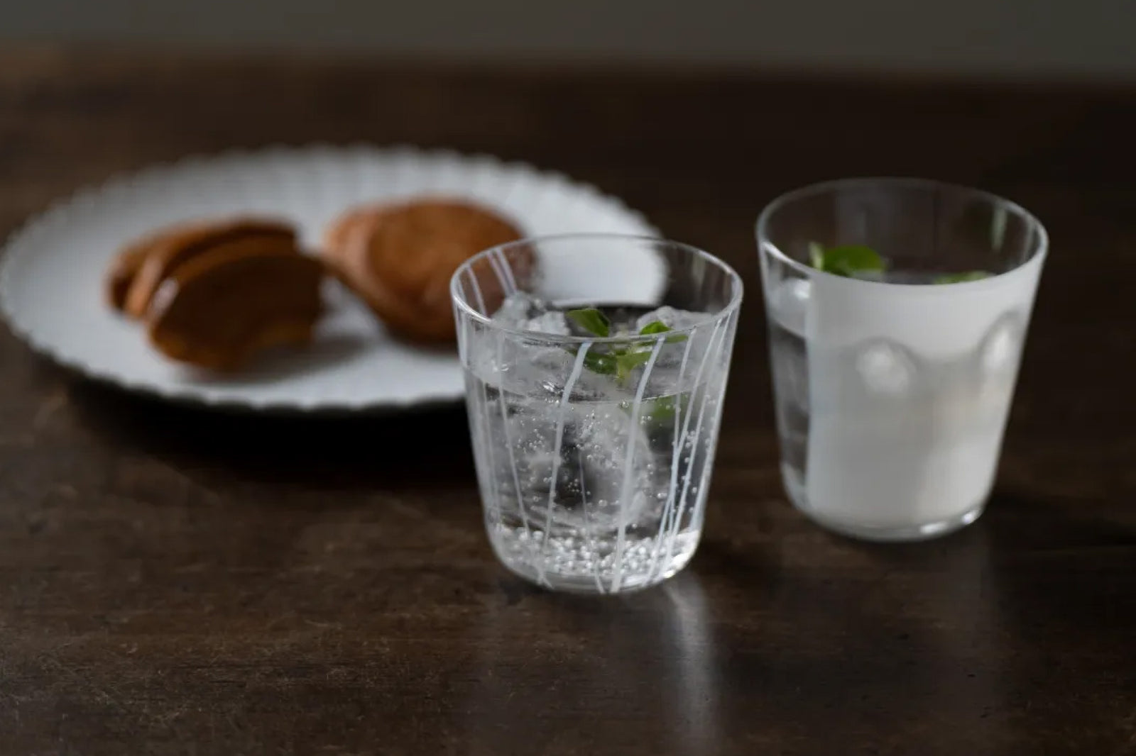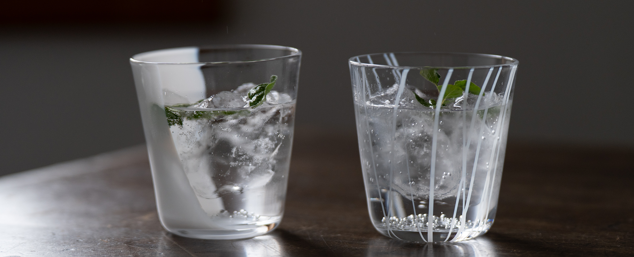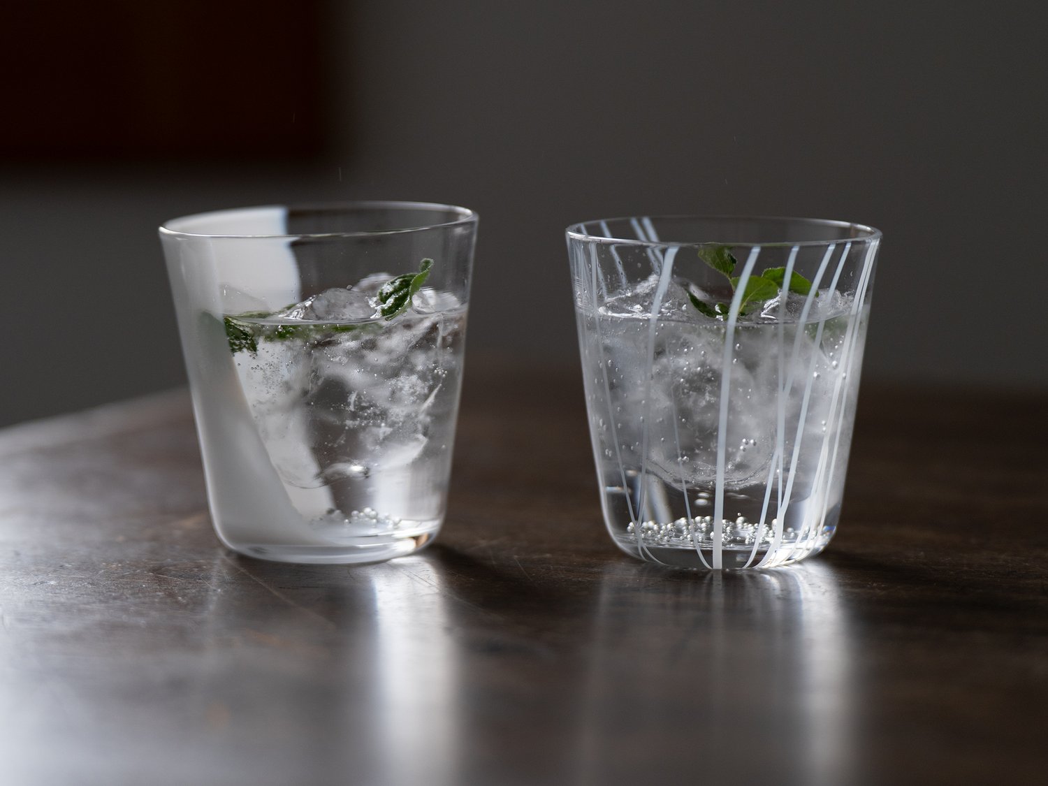 The simple shape brings out the charm of the transparent glass, and the moderate thickness makes it feel stable in the hand. The sparkle increases with the drink poured into it, allowing you to enjoy the expression of the light shining through it.