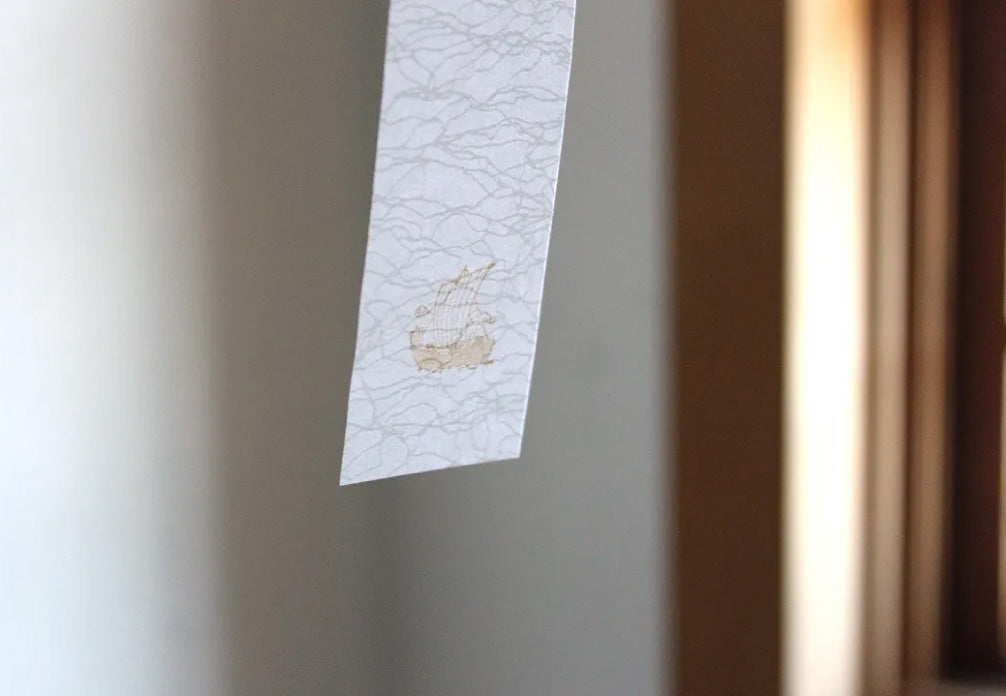 每張紙條都印有北前號船隻的獨特圖案。當它擺放在窗邊時,在陽光的照射下會顯得格外醒目。