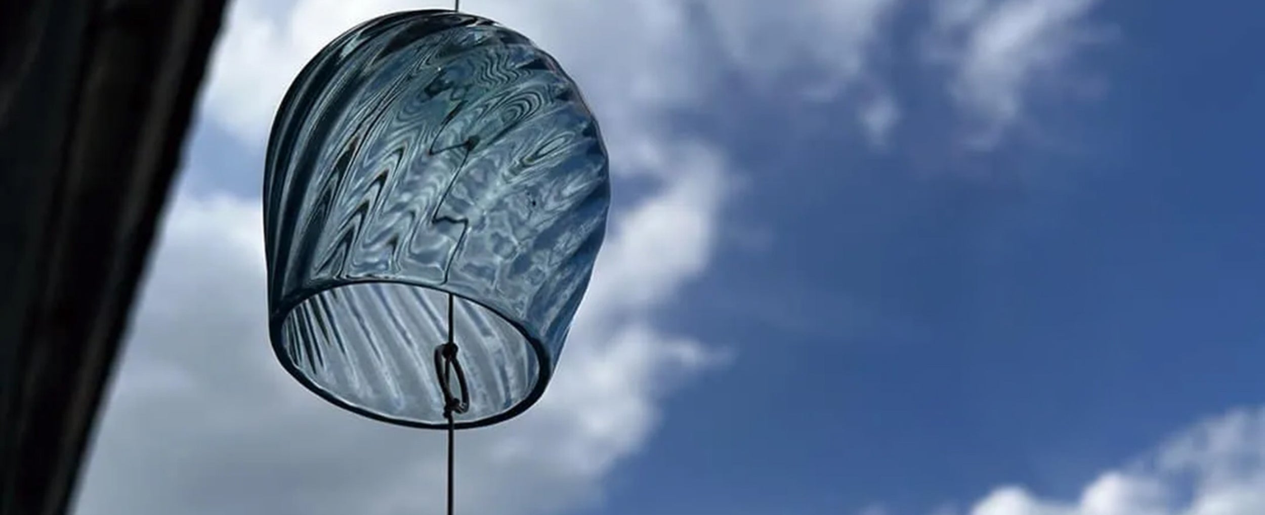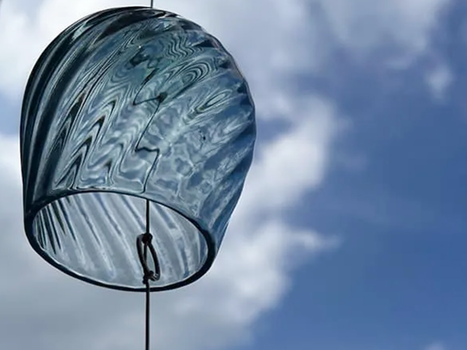 這款風鈴由深藍色玻璃製成,讓人聯想到運河,並採用對角線造型,使其略顯尖銳。