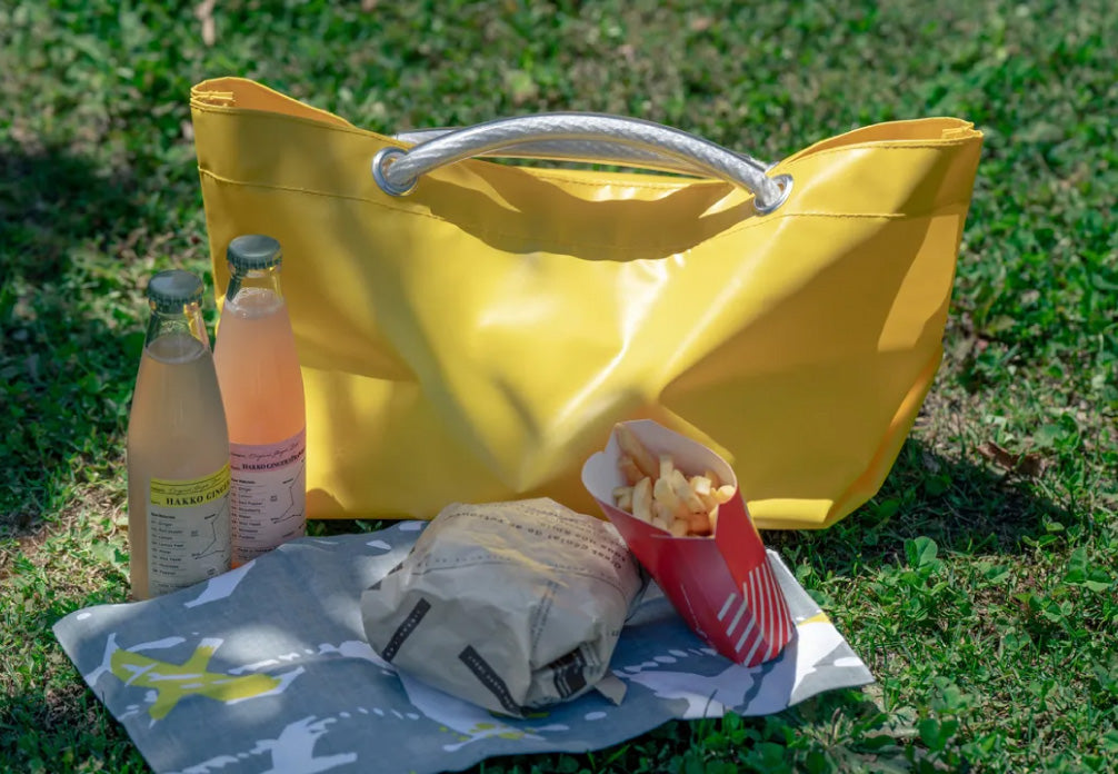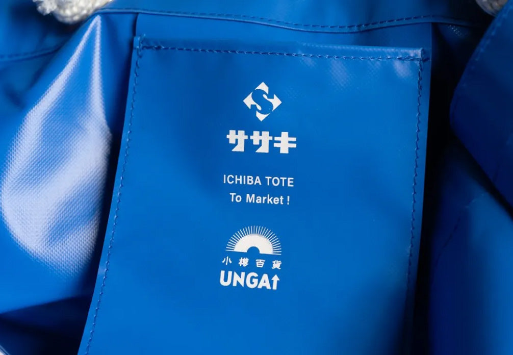 一起去逛市集吧!小樽目前有五個市場:中央市場、三角市場、浦裡湯市場、南樽市場和新南樽市場。近年來,入船市場、手宮市場和妙軒市場相繼消失。為了永遠保留小樽的市場文化,成立於1945年的帳篷工廠佐佐木株式會社,將其長期積累的縫紉技藝與UNGAPLUS對市場的熱情相結合,打造了ICHIBA TOTE手提包。 ICHIBA TOTE採用帳篷和其他戶外建築的耐用防水帆布面料製成,即將登陸市場!