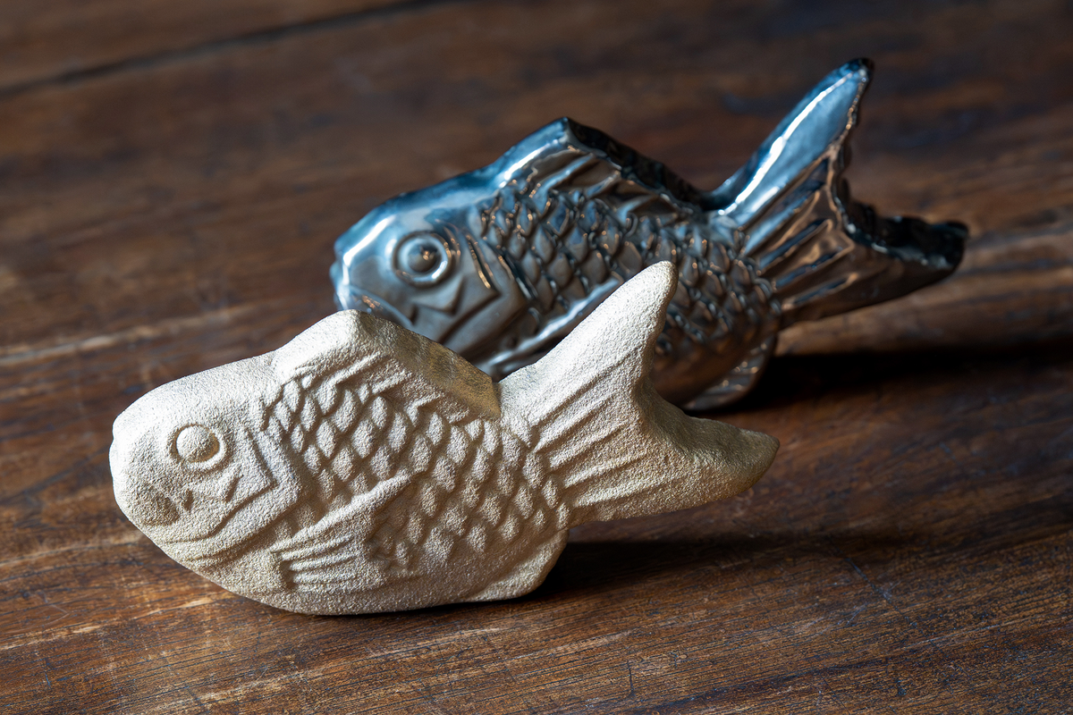 小樽的九谷燒起源於製作乾果的木製模具。北前船的船主們鍾愛九谷燒,並將其帶到北方。九谷燒起源於石川縣加賀市,許多北前船的船主都住在那裡。許多九谷燒器物,很可能是當時北前船帶來的,至今仍保存在小樽,它們的精美絕倫展現了北前船船主的生活方式以及他們對藝術的慷慨投入。 UNGAPLUS委託曾在石川縣學習九谷燒、目前在小樽從事九谷燒創作的Mitsu Kazuhiro,使用製作乾果的木製模具和九谷燒顏料,創作了“小樽九谷”系列作品。這款慶典擺飾(盒裝)以紅鯛魚為主題,紅鯛魚是慶典場合常用的傳統乾果。這款充滿趣味、獨具匠心的 UNGAPLUS 單品絕對是必備之選。